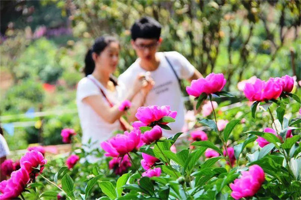 “似有濃妝出絳紗,行充一道映朝霞。”