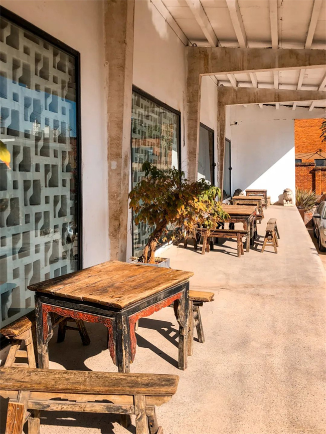 此時陽光正好,把庭院照的亮亮堂堂。兩邊分布著一些老式的桌椅板凳供游客休憩,坐在上面曬曬太陽,那種感覺一定很愜意。也許接待中心的門面是樸實了點,但它的內部可謂是遍布遺珠——館內珍藏著大量民族工藝品、非遺大師打造的器具和年代久遠的老物件。