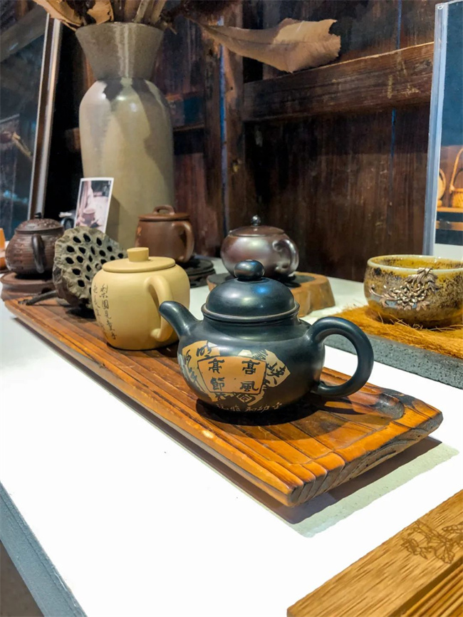 漫步在拾翠接待中心的展廳里,總能在不經意間發現很多驚喜。這里不僅有非遺大師制作的建水紫陶茶壺,還有手編的竹筐等等。