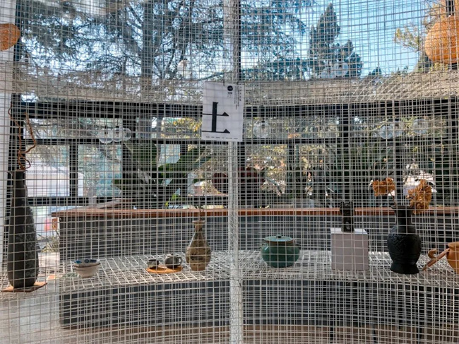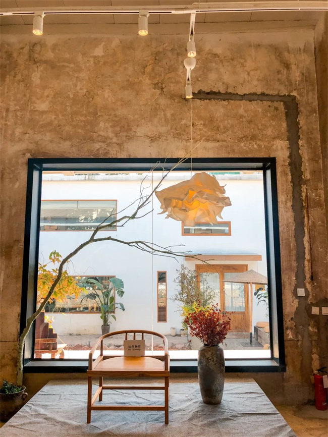 整個展廳的面積非常廣闊,內部區域的協調和劃分也很講究藝術性。枯枝、陶罐、木椅,幾樣東西隨意搭配起來,便自成一方景色。