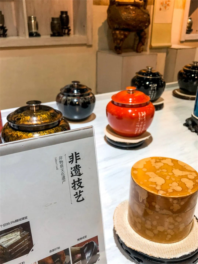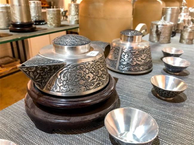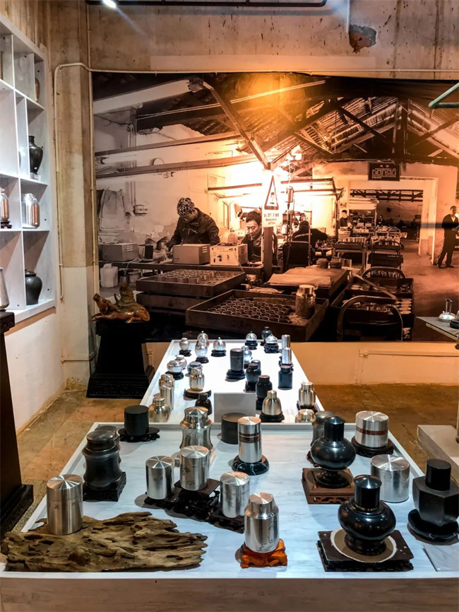 這里的金屬原料以錫為主,它們來自世界錫都——個舊,并且內部所有金屬制品皆由大師精心制而成。車間內的金屬制品很多,不同種類、不同樣式、不同工藝,應有盡有。可以說這里簡直就是一個金屬愛好者的天堂。
