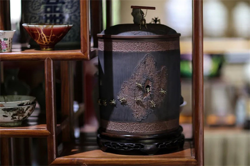 《“蟻”往無前》:看,那破損的茶葉罐身上,有一串栩栩如生的銅鋦小螞蟻正在奮力向上,洞口處,另一只小螞蟻正試圖鉆進(jìn)洞中一探究竟,罐蓋上,一只小螞蟻威武地舉著一根樹枝挺身站立。吾志所向,一往無前,螻蟻尚且如此,何況人乎。作品在中國工藝美術(shù)大師作品暨手工藝精品博覽會(huì)上獲“百花杯”中國工藝美術(shù)精品獎(jiǎng)優(yōu)秀獎(jiǎng),在云南省工藝美術(shù)第十二屆“工美杯”榮獲金獎(jiǎng)。