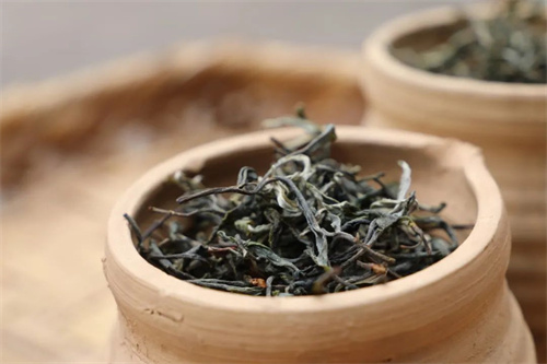經過溫罐之后,第二道工序是燒水和配料的烘烤制作,先用銅壺將取于無量山的甘泉水燒開,再將茶葉放入烤罐中進行抖烤。