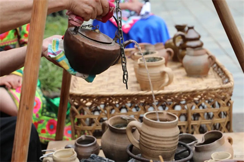 彝家煳米罐罐香茶榮獲首屆全國民族民間茶藝茶道展演大賽金獎、被列入非物質文化遺產保護名錄。煮茶時,必備的是火塘、銅壺和矗立在火塘上的三根支架,這是當年茶馬古道上行進的馬幫所使用的炊具,也是邊疆地區(qū)少數民族最原始最貼切的生活寫照。