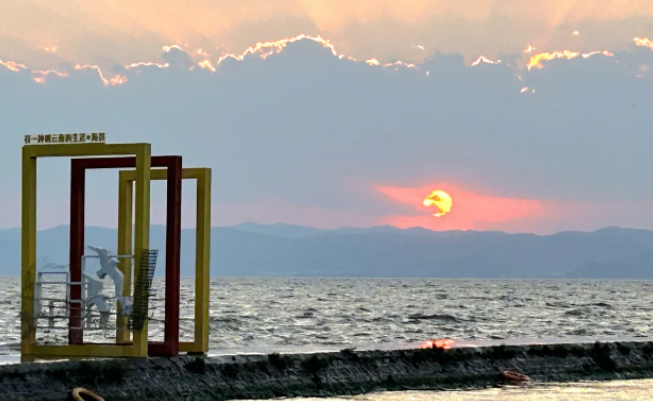 海晏村的日落被譽為昆明最美的夕陽觀賞地之一,吸引了大量游客前來打卡。觀賞地點分為兩個,一個是海晏村的碼頭,是觀賞夕陽落日的最佳地點之一。這里的地面鋪滿了小碎石,水邊種著高大的熱帶樹,樹下還有椅子供游客休息。從岸邊向水里建有一個長長的大堤,人們可以站在大堤上,近距離觀賞夕陽。另一個是村尾的滇池邊有一片小小的沙灘,這也是觀賞日落的絕佳位置。游客們可以在這里架設三腳架拍攝日落,以絕佳的觀賞視角將湖光山色盡收眼底。