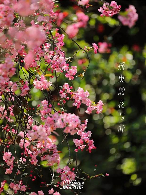 影,竟也被染成了緋色。穿行花穹之下,垂落的花穗輕掃肩頭,讓人想起李清照“試問卷簾人”時,那截探進窗欞的海棠