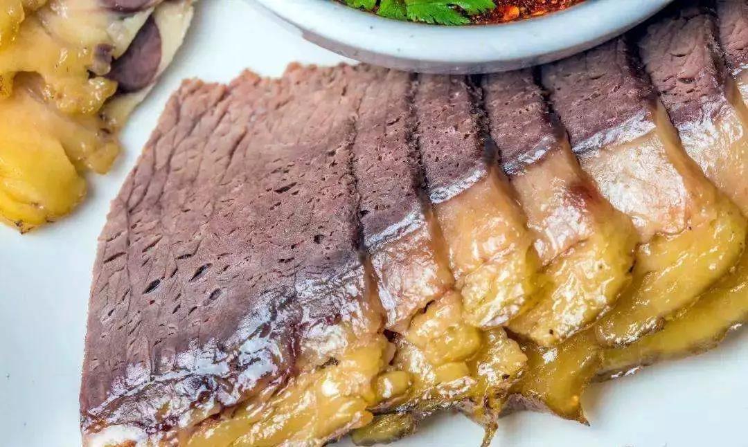 還有牛肉冷片,這個怎么能漏掉?它可是昆明十大名菜之一,肉質沙壯,鮮香不膩,夾一塊蘸上各家秘制的醬料,往嘴里一放,那個香、甜、爽口,一吃難忘。
