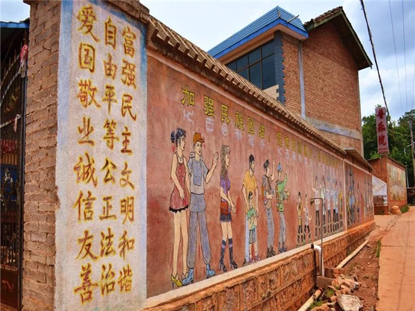 在阿著底,寧靜的小村莊里綠樹成蔭,古宅古樹隨處可見歷史的沉淀,特色的墻畫可以細細品位最生態的撒尼文化,漫步其中,景色美不勝收。