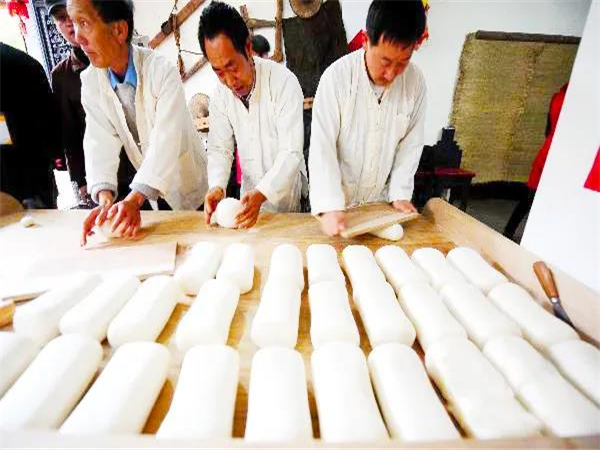 官渡餌塊是一種用大米制作的風(fēng)味小吃,做法十分講究,可以說完全采用人工舂制、人工揉捏等古老的舂制方法制作。