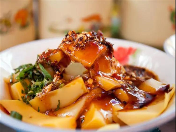 豌豆粉是官渡古鎮(zhèn)夏天里最受歡迎的一款小吃,它是一種以豌豆作為原材料制成的絲滑、透亮、金色的一種食物,充滿豆香原味,看著就能勾起你的食欲。
