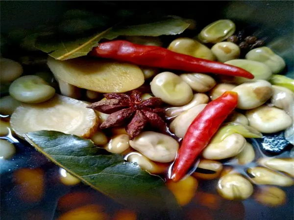 一小碟蠶豆,從古至今都是官渡人飯桌上常備的配菜之一,煮蠶豆的流程較長,首先是把蠶豆放入容器中加水進行浸泡,每日需更換2-3次水,2天后,干扁的蠶豆膨脹后,配以蔥姜蒜油醋、辣椒胡椒粉等進行煮,使得蠶豆入口即化,老少皆愛。