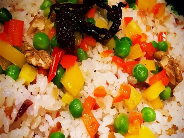 官渡古鎮(zhèn)的小吃店里,火腿洋芋燜飯是比較常見的,而且味道非常好,以銅鍋或砂鍋盛滿包含大米、火腿、蠶豆、土豆等色彩鮮艷的米飯,佐上一點當(dāng)?shù)氐南滩撕蜏钤僭趺刺籼薜纳嗉庖搽y以抵擋住那色香味俱全的火腿洋芋燜飯。