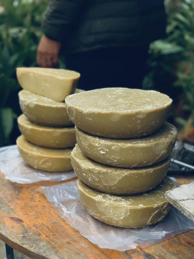 做漆油雞,漆油是這道菜的靈魂。漆油來自于漆樹,這種漆樹生長在怒江和瀾滄江兩岸。漆油是從漆樹果實中榨取出來的固體油脂漆油,取下來的漆樹果實先要舂碎,然后放入鍋中翻炒,翻炒結束后再進行壓榨,但這時的漆樹籽必須是在溫熱階段,如果涼了就壓榨不出漆油了。壓榨出漆油后放到容器里面進行冷卻,然后就得到了我們的漆油。
