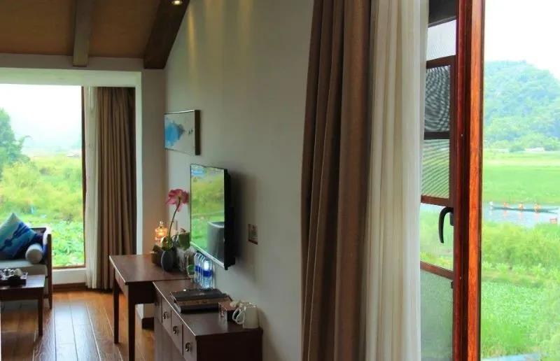 民宿身處普者黑景區(qū)中,在景點(diǎn)情人橋旁。民宿一樓的長(zhǎng)廊在一個(gè)偌大的荷花池邊,每個(gè)房間面對(duì)廣闊的池塘,每當(dāng)荷花盛開的時(shí)節(jié),滿池的荷花搖搖曳曳,讓人心醉。池塘連著大片的山水風(fēng)光,可以說每間房都是風(fēng)景房。