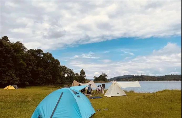 當夜幕降臨,湖面倒映著繁星滿天時,你可以看云朵、看月亮,也可以聽聽風吹草地的聲音。湖水拍岸的“嘩啦”聲與自然同頻,讓你的心也變得如此寧靜。