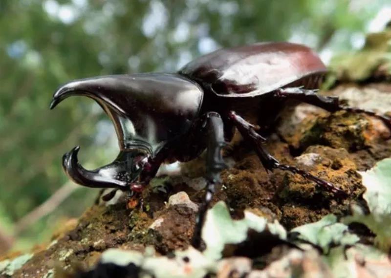 橡膠木犀金龜屬鞘翅目犀金龜科,也叫姬獨角仙或姬兜,在農(nóng)村,因其喜歡在牛糞下打洞產(chǎn)卵,云南俗稱“牛屎爬”。橡膠木犀金龜食性雜,受驚時會摩擦身體發(fā)出響亮的聲音。雌雄異型,雄性個體有頭角和胸角,但個體差異很大,有些雄性的角非常威武,有些雄性的角只是一個凸起。雌蟲無角,常在腐殖質(zhì)多的地方產(chǎn)卵。成蟲以吸食樹汁為主,幼蟲喜食腐殖土和朽木,屬于分解者。國外分布在東南亞及南亞各國,國內(nèi)分布在南方的廣東、廣西、海南、福建、云南等地。