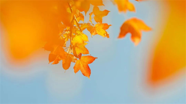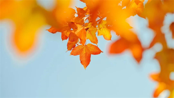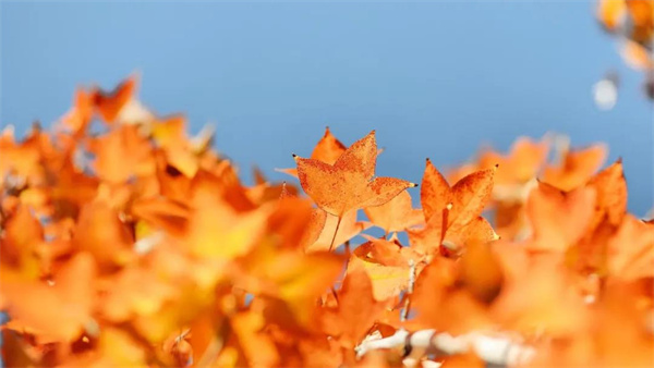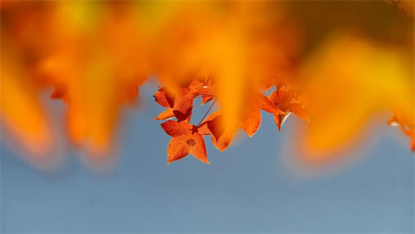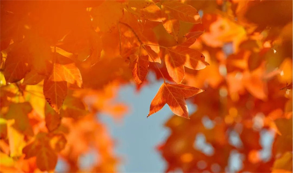 忍不住撿起一片已落下的楓葉,輕輕夾在書里,展平,做城標簽,寄給相思的遠方。那一片火紅的楓葉似多情的種子在心理扎了根,發了芽,不負相思人。那落滿小徑上的楓葉,惹人愛憐,承載了滿滿相思情。