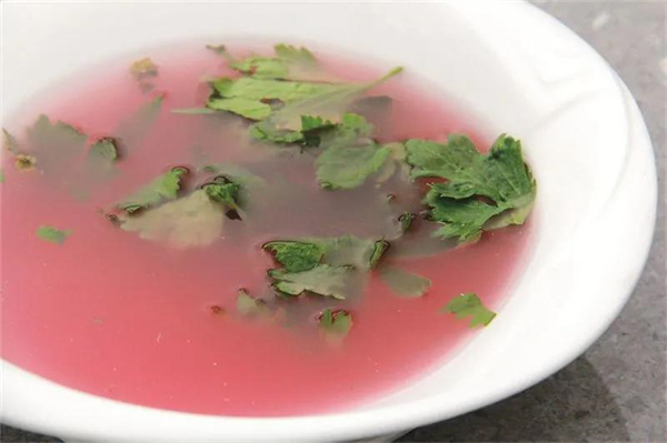 岜夯顏色粉嫩透亮,湯微酸清爽,飯桌上飲用可解油膩,其中原因,就在于紅青菜和細葉芹、馬蹄蓮、玉米棒等蔬菜一起在米湯中充分發酵,粉紅粉紅的湯色,在夏日既能消暑又能養胃,是廣南壯族同胞最容易獲取的傳統壯藥美食。