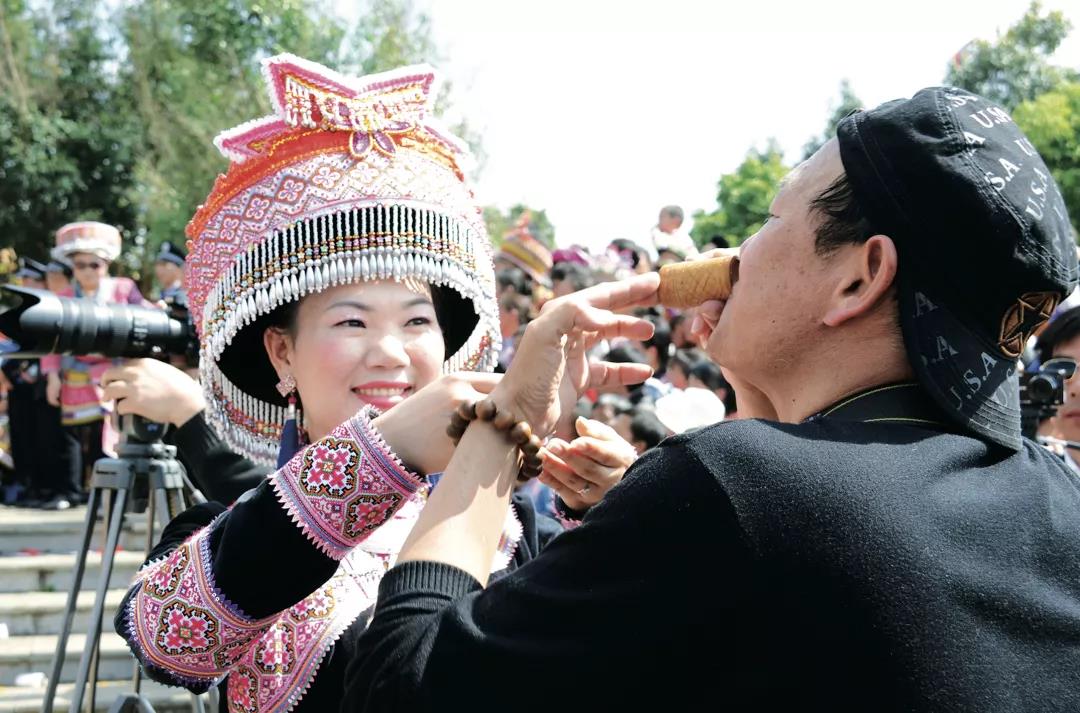 苗族是崇尚自由的民族,因此以歌做媒的目的也是為了尋得好姻緣,夫妻一世和睦相處。花山節也是苗族青年男女相互傾吐愛情、定婚結友的美好時機。“對歌開始時,一般都是些公式化的套歌。”多年在花山街上“觀戰”的羅廷書說,男女雙方都要相互頌揚一番,這也是唱歌的規矩,是不可缺少的禮貌。