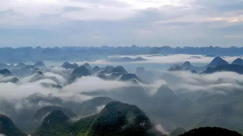 成千上萬的“饅頭峰”,錯落分布在春季金燦燦的油菜花田間。