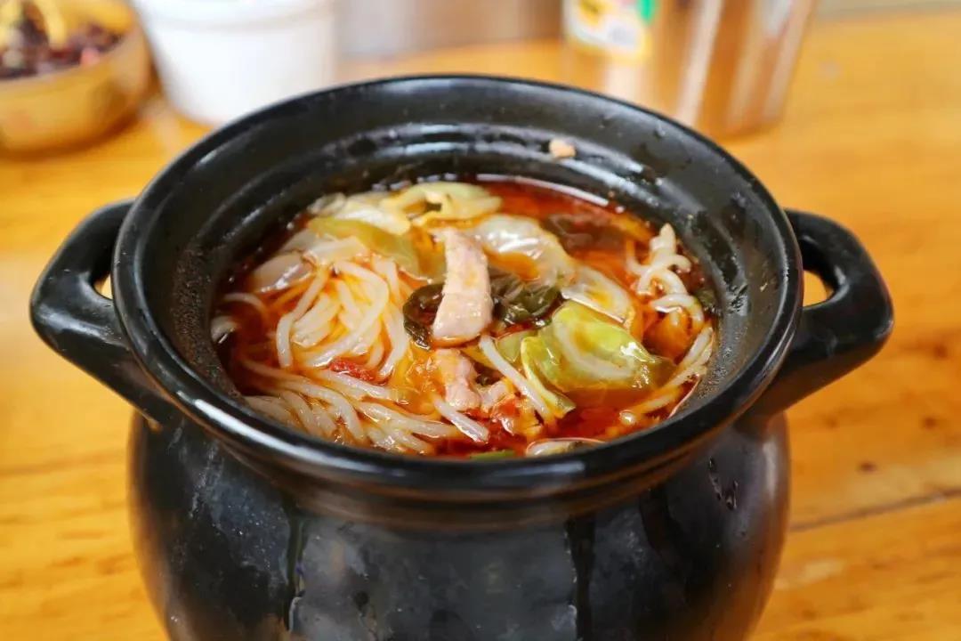 小鍋米線是昆明人常見的米線烹飪方法,米線都是在炭火上用小鍋煮沸,再往里面加入鮮肉、米線。