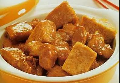 這是普洱的一道傳統名菜,以雞肉和雞蛋為主要原料。成品狀如水豆腐,撒上備好的蛋片絲、火腿絲、蔥花等佐料即成。