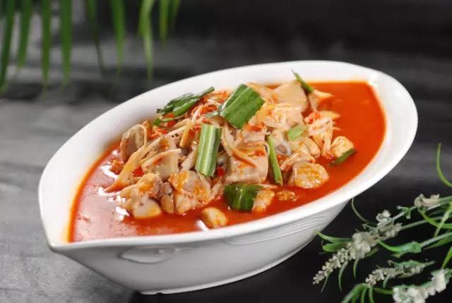 這是一道傣族傳統名菜,用特質的酸筍配上鮮嫩的雞肉熬成湯,加上傣家特有的香料香茅草,酸辣開胃。