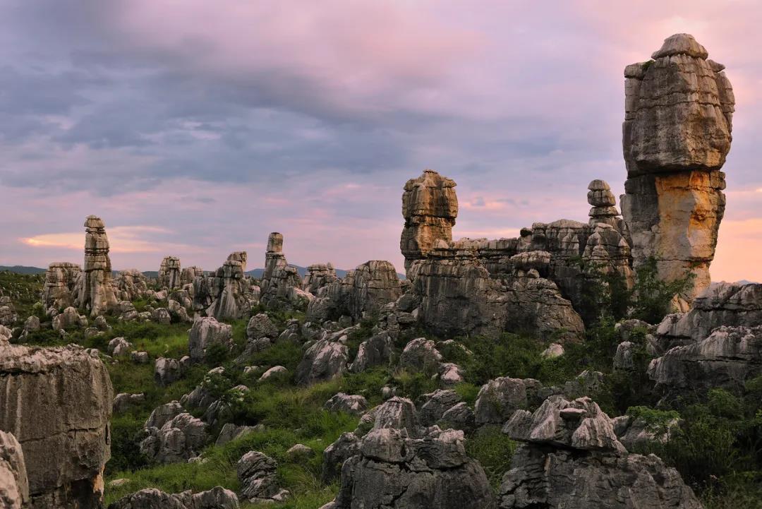 平日的石林是灰色的,而到了金秋,石林就會變成粉色的花海,乃古景區的上千畝波斯菊競相開放,柔美的花海搭配壯麗的石山,絕對是最美的人間仙境。