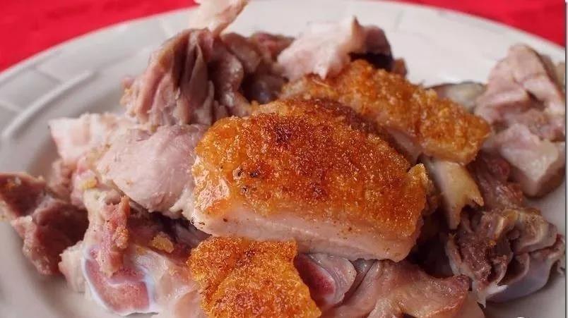 河口燒豬肉技術來自兩廣,清中晚期,河口已有燒豬肉面市,經過多年烤制技術、配料的不斷改進,河口烤制的燒豬肉,皮脆肉嫩,色澤金黃,香氣誘人,是傳統的地方風味佳肴。